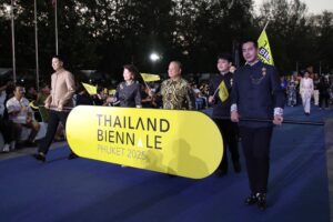 นายอนุทิน ชาญวีรกูล นายกรัฐมนตรี มอบหมายให้นางสาวซาบีดา ไทยเศรษฐ์ รัฐมนตรีว่าการกระทรวงวัฒนธรรม เป็นประธานพิธีเปิดงานมหกรรมศิลปะร่วมสมัยนานาชาติ Thailand Biennale, Phuket 2025 โดยมีนายประสพ เรียงเงิน ปลัดกระทรวงวัฒนธรรม นายนิรัตน์ พงษ์สิทธิถาวร ผู้ว่าราชการจังหวัดภูเก็ต นางเกษร กำเหนิดเพ็ชร ผู้อำนวยการสำนักงานศิลปวัฒนธรรมร่วมสมัย (สศร.) ผู้บริหารกระทรวงวัฒนธรรม คณะกรรมการดำเนินโครงการฯ คณะทูตจากประเทศต่างๆ นางพวงผกา เชาวน์ไวย วัฒนธรรมจังหวัดภูเก็ตและวัฒนธรรมจังหวัดภาคใต้ นางอัญชลี วานิช เทพบุตร นายกสมาคมศิลป์ภูเก็จ นายอริญชย์ รุ่งแจ้ง ผู้อำนวยการฝ่ายศิลป์โครงการฯ นางสาวมาริสา พันธรักษ์ราชเดช Mr.David Teh และMs.Hera Chan ภัณฑารักษ์โครงการฯ ศิลปินชาวไทยและศิลปินต่างชาติที่เข้าร่วมจัดแสดงผลงานศิลปะร่วมสมัย ผู้แทนหน่วยงานรัฐ เอกชน เครือข่ายศิลปินจังหวัดภูเก็ตและศิลปินส่วนภูมิภาคและสื่อมวลชน เข้าร่วม ณ สวนสาธารณะสะพานหิน อำเภอเมืองภูเก็ต จังหวัดภูเก็ต
